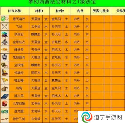 黄金:它对攻击类型的法宝有额外1%的加成。