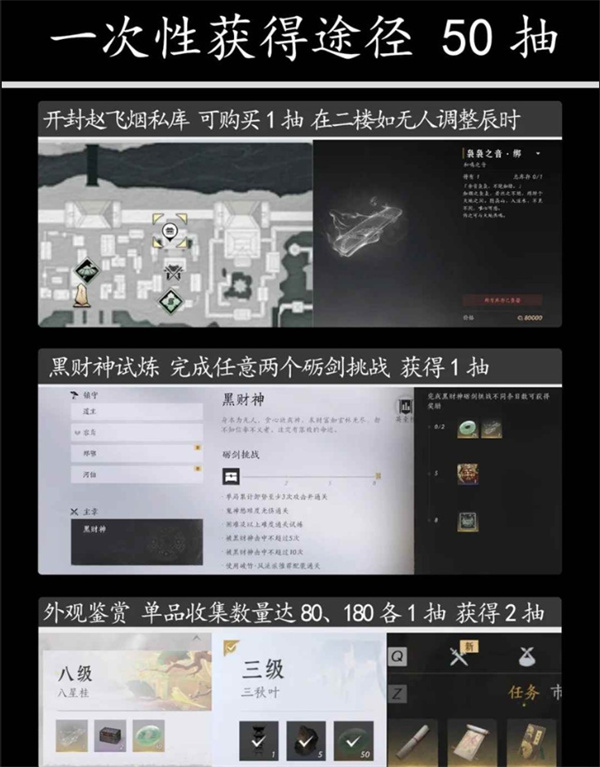 外观鉴赏/单品收集数量达80件和180件,各奖励1抽
