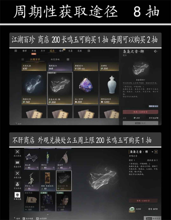 使用200长鸣玉兑换,每周限购2次