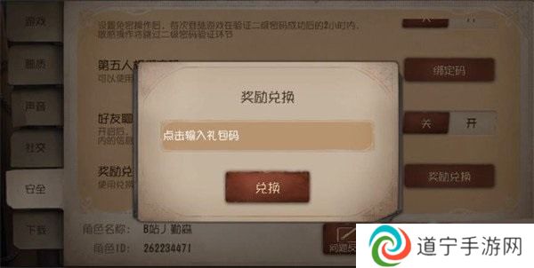 开始游戏点击右上的设置菜单。没置然后点击安全性,然后一直往下拉会见到奖赏换取按键点击查看。点一下后键入礼包兑换码点击换取就可以。总体来说还是很简单的,游戏玩家只应该按照流程操作提示。