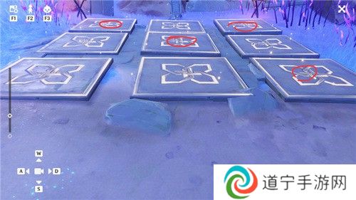 3、踩对比图中不亮的石板,如图所示,踩亮的石板,然后分别踩左下角和右上角的石板;