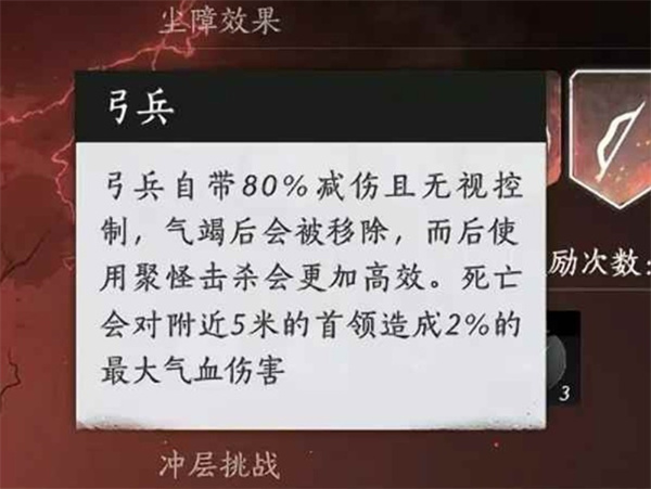 每个弓兵能为Boss造成 2%气血伤害,共计三只,总伤6%。