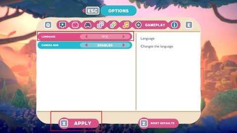 3、在LANGUAGE里面切换到中文,最后点击APPLY保存。
