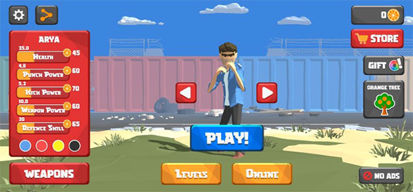 街头搏斗中文版怎么玩:1、打开街头搏斗中文版后,进入主界面,可以用两边的箭头切换不同的角色。
