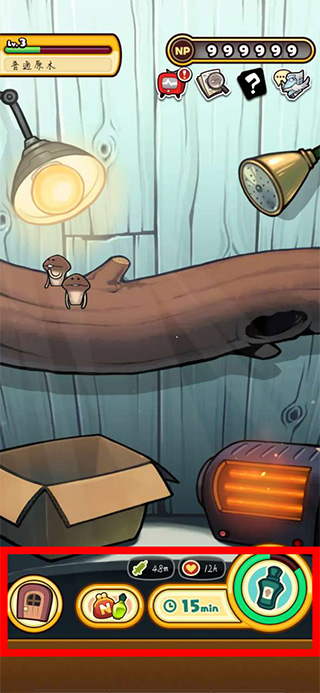 2、菇菇成熟后用手指滑过就能收成,收获的菇菇会换成NP,用来买食物和升级设备。