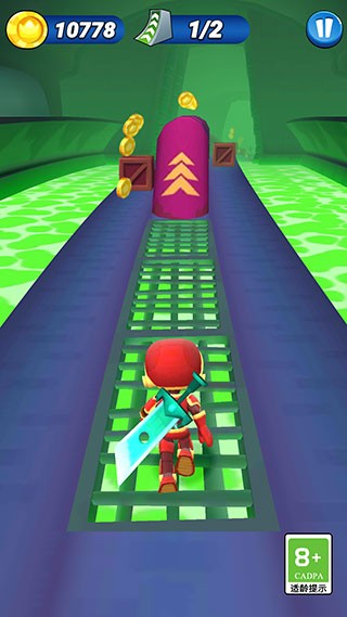 2、在奔跑途中收集金币能提高分数,还能解锁更多玩法。