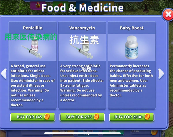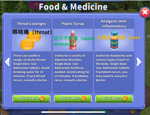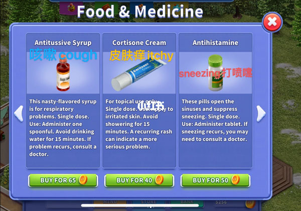 虚拟家庭3汉化版正版生病攻略:1、如果角色喉咙痛,就给他用Throat lozenges。