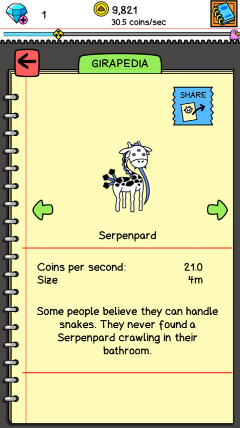 3、将两只长颈鹿合成为一个新的长颈鹿,不同种类的长颈鹿生产出来的金币数量完全不同。