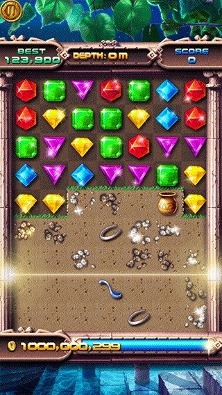 2、消除大量宝石不仅能得分,还有机会获得金币,金币可以用来购买实用道具。