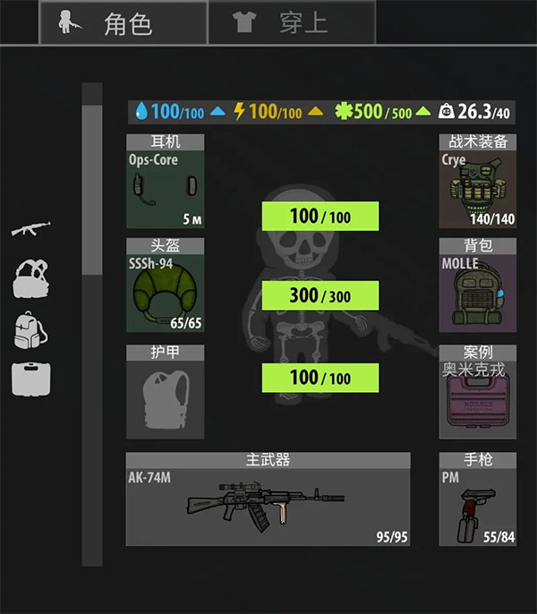 白手起家:(头盔、战术背心、背包、副武器、少量药品)