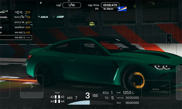 4、赛车可深度调校,包括外倾角、减震器、空气动力学和传动系统,让你像在专业模拟器里一样操作。