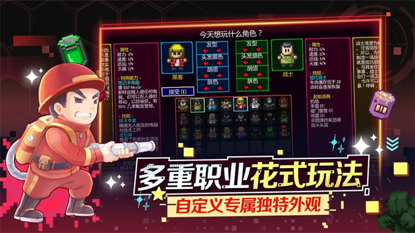 代号街区完整版是一款像素风格的Roguelite类动作RPG手哦有,游戏中玩家将扮演不同的游戏角色职业,如酒保、科学家、计算机天才、大猩猩,它们都拥有独特的技能,更有种类丰富的战斗道具,缩小射线、催眠器、手提音响、捕熊夹、食物处理器,搭配你的战斗流派,在战斗副本中大杀四方。代号街区完整版拥有独特的随机生成世界场景机制,每一种玩法都是创新新奇的,保证了玩家在600个小时内可以体验到不一样的游戏乐趣。