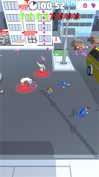 2、只要不被医护人员追上就算赢,难度不高,很容易上手。