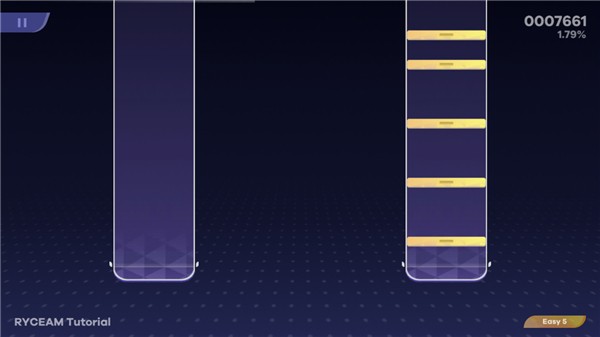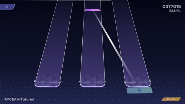 镜之韵律Ryceam新手教程1、游戏中的轨道会在屏幕上显示,点击轨道可将其高亮,随后各种音符会沿着轨道滑落。
