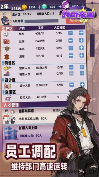 时尚帝国崛起是一款融合了经营+肉鸽卡牌的休闲放置手游。游戏中,我们将会摇身一变,成为时尚行业的造梦者,从零开始打造属于自己的时尚帝国!从规划生产线开始,实现设计到运输,再到销售的流水线作业,以此来赚取资金。还可以招募你的精英团队,将他们派遣到各个部门,提高整体的工作效率,为你带来更高收益!除此之外,还要参与残酷激烈的商战,不断提高公司的知名度!
