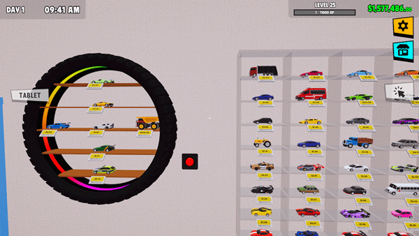 5、不断升级商店,增加货架、赛车平台和收藏展示区,让更多车迷愿意来逛。