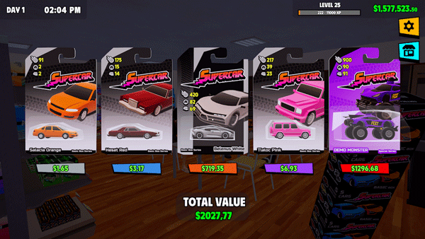 超级跑车收藏模拟器是一款趣味十足的模拟经营游戏,由steam移植而来,不仅完美继承了端游的经典玩法和特色,还采用了真实的3D建模打造,场景和人物形象设计优秀,可以带给玩家沉浸式的游戏体验。在超级跑车收藏模拟器游戏中玩家将扮演一家玩具跑车商店的老板,通过进货、售卖跑车模型盲盒、举办赛车比赛等方式,不断扩展商店规模,提升人气,并增加自己的跑车收藏。另外,超级跑车收藏模拟器游戏还提供了多种系列的跑车模型,每个系列都有其独特的优点,玩家可以通过不断解锁和购买,丰富自己的跑车收藏,更设置了跑车盲盒机制,玩家可以购买盲盒并亲自开启,有机会获得稀有车型,增加游戏的趣味性和不确定性,有兴趣的朋友快来下载体验吧。
