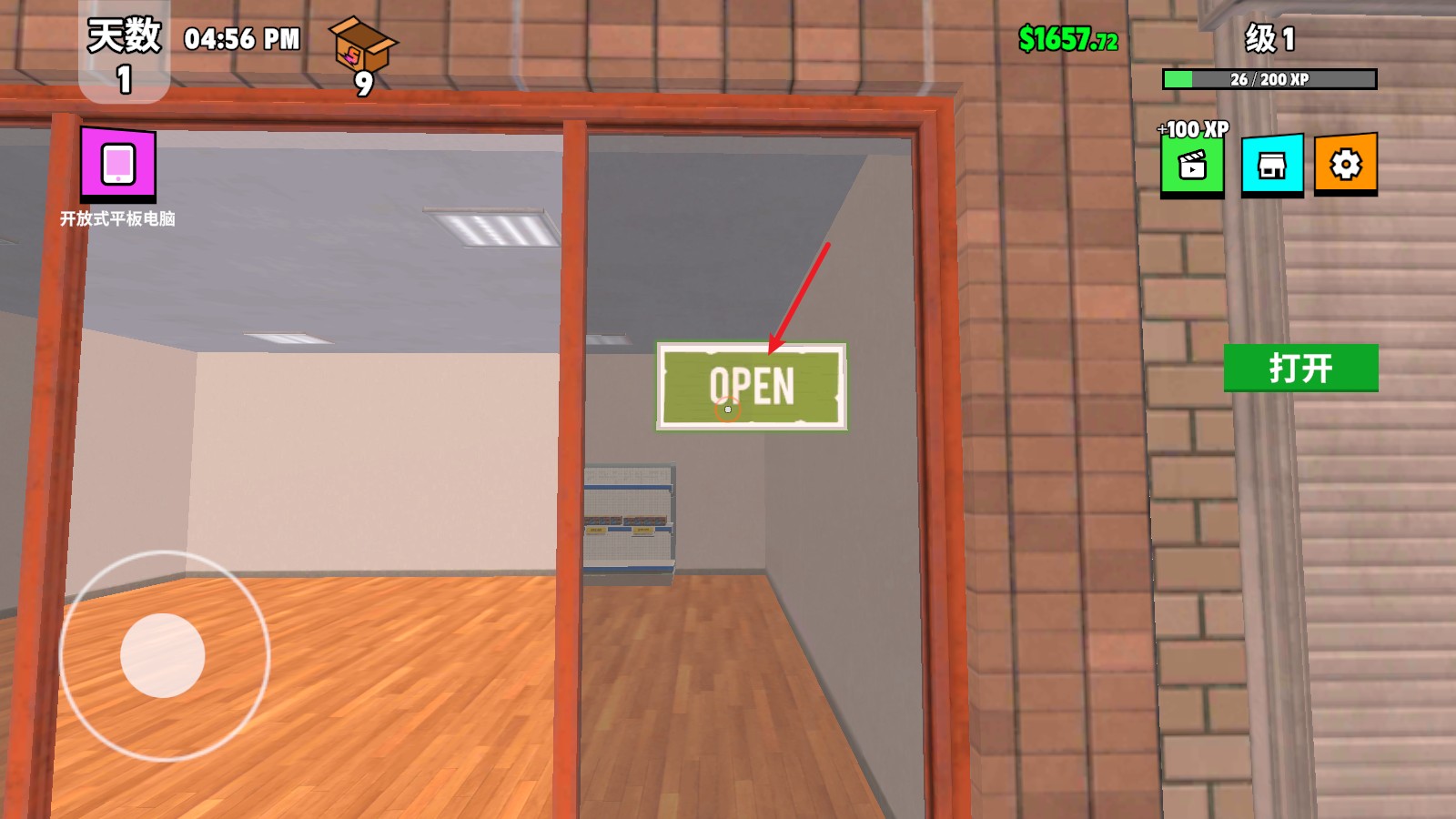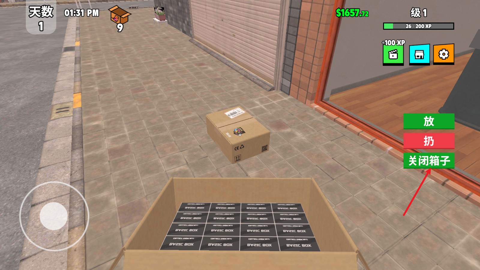 3、过一会货物就会运送到店门口,靠近后就能够拿起,然后点击打开。