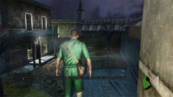 1、越狱起始:沿着走廊前进,拾取针筒,遇到背对你的首位敌人。