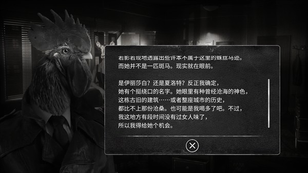 公鸡神探中文版是一款以剧情解谜为核心的游戏,由 HandyGames 工作室精心打造,本版本为中文版。玩家将化身为公鸡侦探,与搭档一同调查并破解城市中接连发生的命案。凭借细腻刻画的世界观、充满棱角的故事情节以及荒诞幽默的氛围,玩家需要不断搜寻证据并解析信息,逐步揭开案件真相。公鸡神探中文版以逼真的故事设定结合黑白艺术风格,赋予整体画面紧张感与沉浸感。你还需要从NPC口中获取重要证词,将所有线索串联起来进行案件复盘,全面考验推理能力。