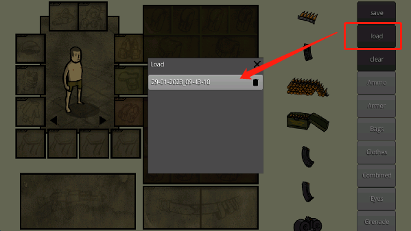 5、打开“load”,选择刚保存的存档就能快速生成搭配。