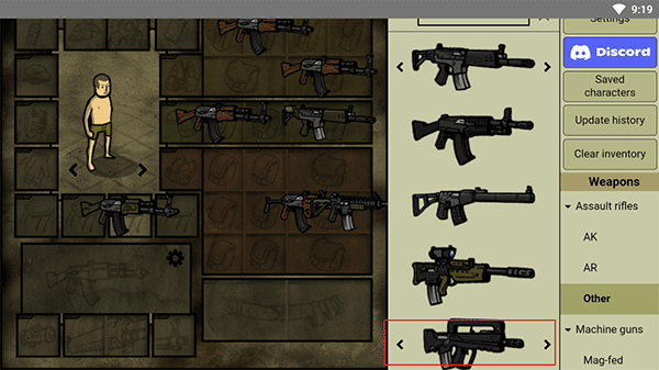 Innawoods汉化版怎么设置枪械配件:1、选择一把枪,此时它是未安装配件的状态。