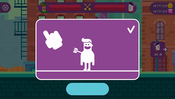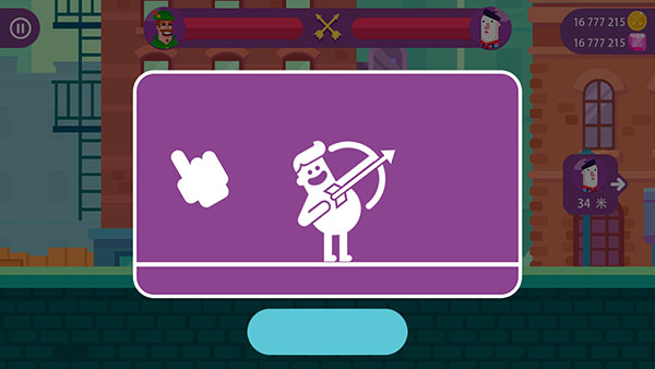 冷血射手中文版(Bowmasters)是一款基于真实物理引擎打造的射击动作手游。就游戏本身来说,它的玩法也是非常的简单,玩家们如果曾经体验过愤怒的小鸟,那么对于这款游戏你也能快手上手。这是因为它们都有着相似的玩法,都是通过抛物线的形式进行射击,这也是称它为基于真实物理引擎打造的原因之所在。但不同的是,冷血射手中文版主要是通过对战的形式来进行的,这也就表明,游戏中是存在着对战双方的,而且输赢都是基本现象,并非闯关那样达不到条件就可以重来。