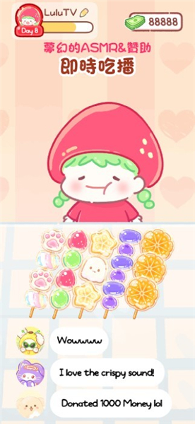 3、完成制作后可以开启吃播,与观众互动并获取赞助金购买新材料。