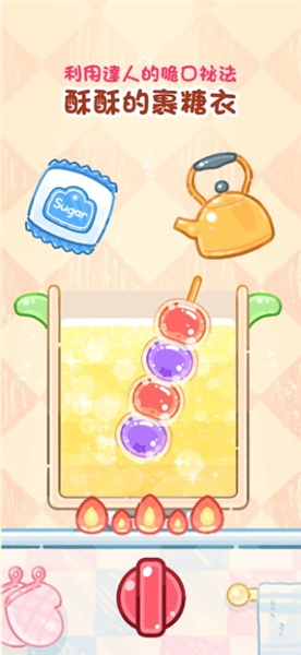 糖葫芦达人食堂版游戏特点:1、将食材串满竹签后放进锅里搅动,运用独门技巧才能裹出薄脆的糖衣。