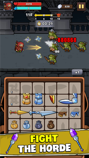 装备战士游戏特色:1、你可以拖动物品进行合并升级,每次融合都有机会解锁更强的武器或全新的技能。