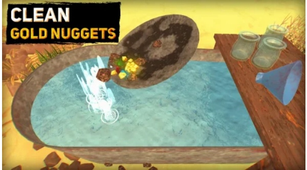 淘金热矿工模拟器中文版游戏亮点:1、用水流冲洗矿石,再通过摇动盘子去掉多余颗粒,从一堆原矿中分离出黄金颗粒。