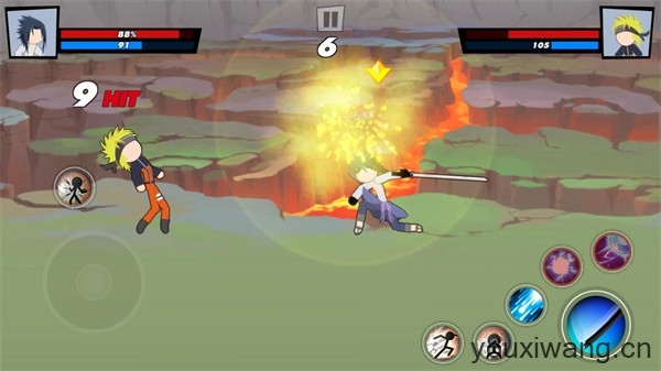 5、使用普攻和技能攻击敌人,把对方血量打空就能获胜。