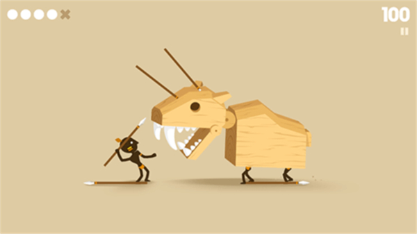 1、你需要通过按住屏幕后撤来躲避猛兽攻击,然后滑动屏幕向敌人投掷武器。