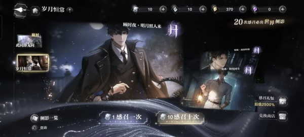 世界之外四大男主之一,在时代旧影副本中是一名军阀,北大洲的掌权人,但对外宣称是一名商人。一般在游戏中顾时夜扮演保护者的角色,是玩家背后强大的后盾。