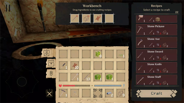 1、优先收集木材与石料,搭建工作台与工具台,保证早期发展。