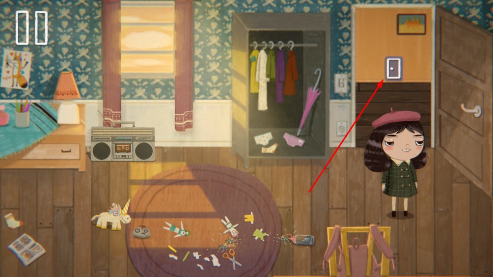 3.点击衣柜旁边的开关,解锁新区域、推动故事发展。