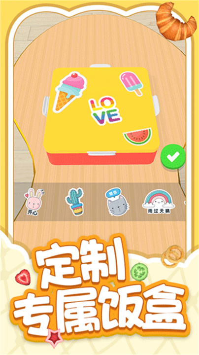 2、你可以在游戏中设计自己的三明治、布置小吃,甚至还能切分食物。如果你喜欢整理和填充冰箱,那么你的打包技能还可以再上一个台阶。在这款美味模拟游戏中做好上学前的准备吧。