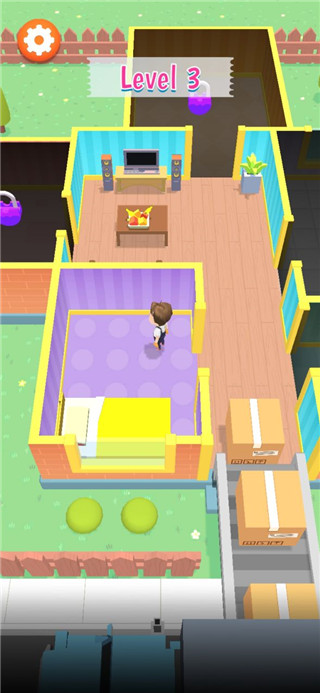 2、完成关卡后解锁新空间,如舒适卧室与宽敞客厅。
