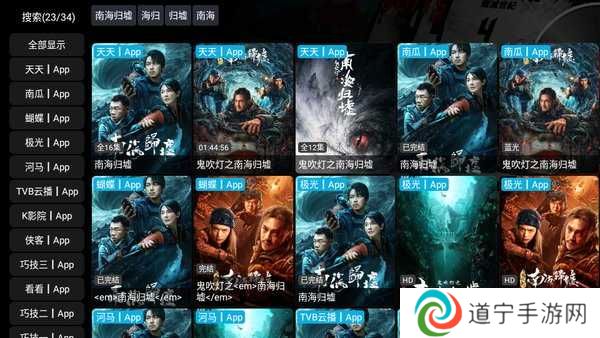 3、完成上述步骤后,软件会自动重启。重启完成后,即可通过搜索功能查找心仪的影视剧,例如输入“南海归墟”,系统将提供多个播放源供选择,点击其中一个即可开始播放。