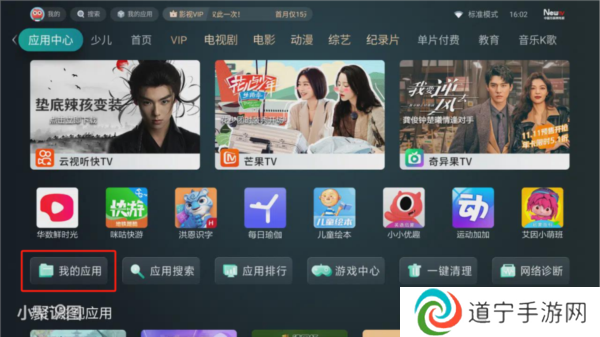 2、将U盘插入智能电视后,在主菜单中找到【应用中心】入口。通常情况下,它会出现在屏幕的主要区域或系统设置中。