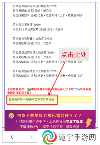 使用手机浏览器进入支持荐片播放器的网站,找到想看的影片下载页面,点击"荐片播放"链接。
