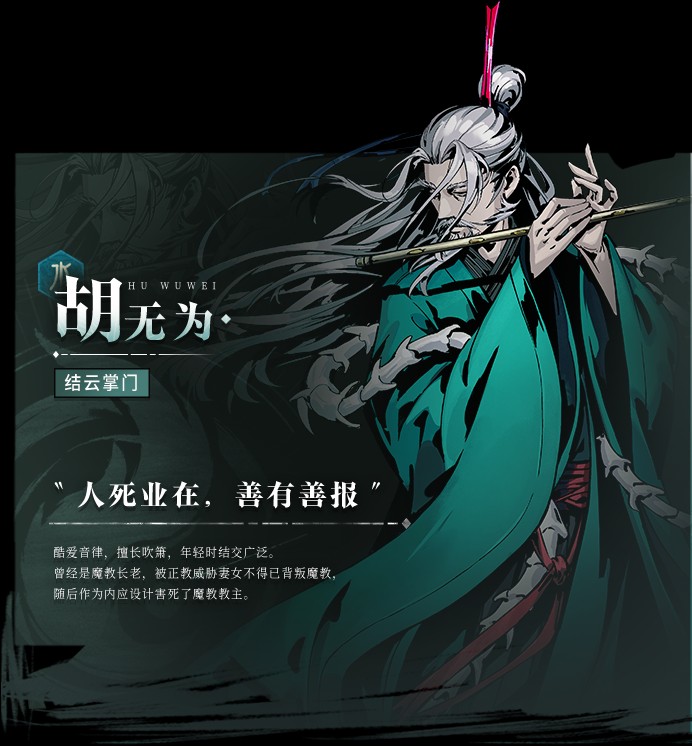 曾为魔教长老,精通音律,擅长吹箫。因家人遭正派威胁,不得不背叛旧日阵营,并在内乱中策划暗害教主,命运颇为复杂。