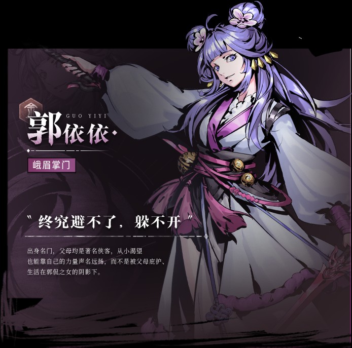 出生武林世家,父母皆为名门侠客。她渴望挣脱“郭侃之女”的身份标签,凭借自己的实力闯出一片天地。