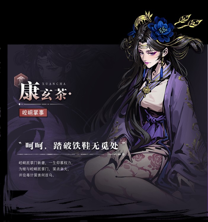 崆峒派掌门之妻,一生向往掌控与权势。为达目的,她不惜毒害丈夫并暗算何首乌,令人闻之色变。