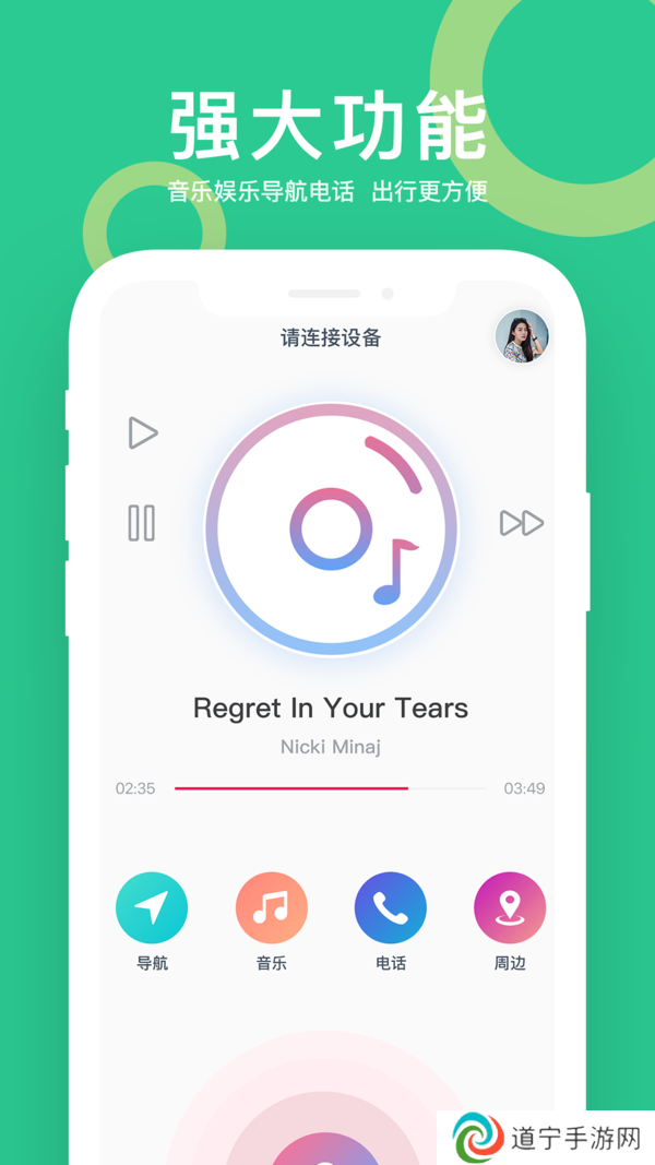 手机不用摸,想听什么随便说! 丰富的在线音乐资源,使用时使用语音进行搜索和操控 ;